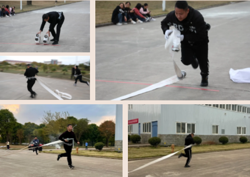 经过两个小时激烈的角逐,现场评选出“50米双盘水带连接”、“100米干粉灭火器扑灭油桶火(男/女组)”项目一等奖、二等奖、三等奖,并进行表彰。