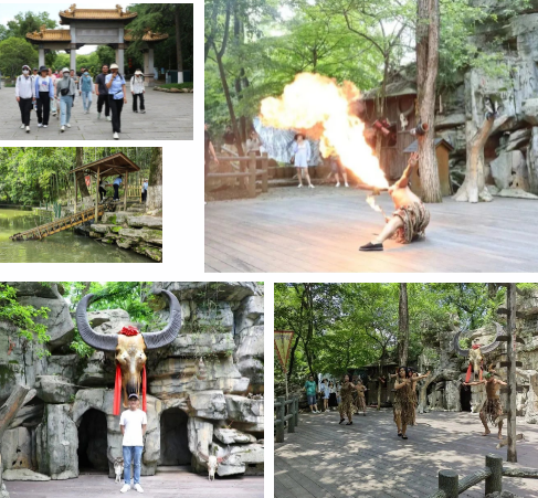午饭之后,便前往此行第二站。走进景区,驻足观赏原始而又美丽的野人表演,参观远古时代野人山洞及其生活的风情。