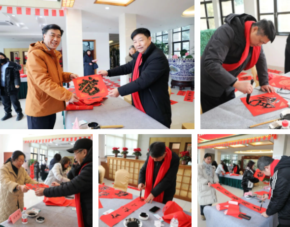 每逢春节,无论城市还是乡村,家家户户都要精选福字、春联张贴于门上,以此辞旧迎新。从“千门万户除旧岁,总把新桃换旧符”到“天增岁月人增寿,春满乾坤福满门”,人们用各种美好的祝福语表达对来年的美好渴望。为弘扬中华传统文化,践行社会主义核心价值观,进一步丰富EMC易倍人的精神文化生活,营造欢乐喜庆、文明祥和的新春佳节氛围,1月29日,姜堰区书法家协会走进EMC易倍集团开展“’龙腾三水’迎新春、送祝福”活动,为企业员工送上美好的龙年祝福。