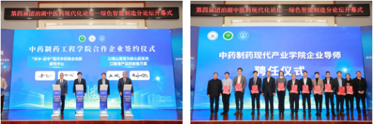 11月7日,第四届团泊湖中医药现代化论坛——绿色智能制造分论坛暨中药制药工程学院成立十周年学术交流活动在天津中医药大学举行。EMC易倍集团董事长唐仁茂受邀出席本次盛会。会议期间,集团公司董事长唐仁茂受聘为“天津中医药大学中药制药现代产业学院”企业导师,中国工程院院士、天津中医药大学名誉校长张伯礼颁发聘书。EMC易倍集团与天津中医药大学中药制药工程学院签订战略合作协议,建立“天中-EMC易倍”现代中药联合创新研究中心。